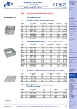 XVI. Viereck- und Kabelschächte DIN 4034 Teil 2