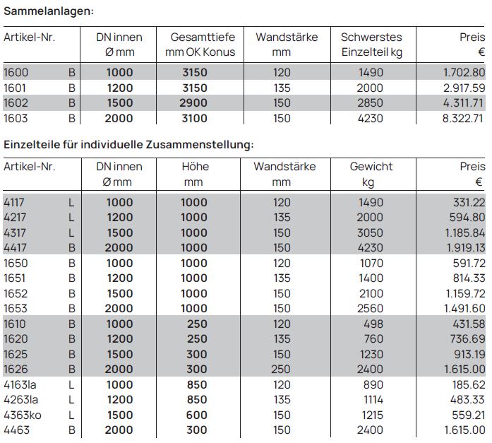 (DN 1500 mit Konus 1500/625/600 mm / DN 2000 mit Abdeckplatte 2000/625/250 mm),