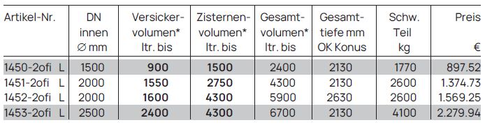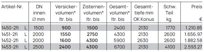 Sicker-Zisternen “2 in 1” ohne Filter, bestehend aus: