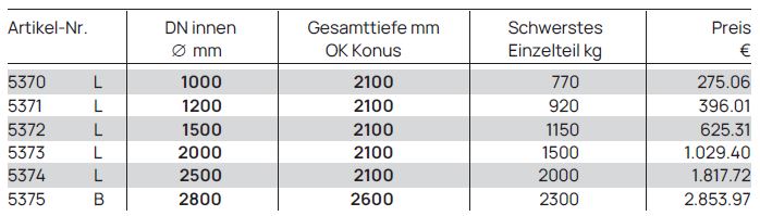 • 1 Schachthals, 600 mm hoch (Muffe ab DN 2000 mit ÜP-M).