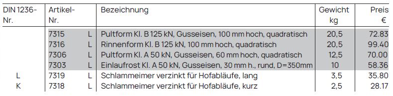 Schachtabdeckungen Beton-Guss & Einlaufroste