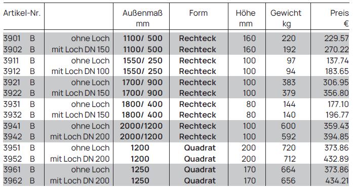 Auf Bestellung erhalten Sie bei uns auch Abdeckplatten, die in rechteckiger, quadratischer oder individueller Form hergestellt werden. Diese Flexibilität ermöglicht die Abdeckung von Schächten, Gruben oder Behältern mit nicht standardisierten Maßen, wie sie beispielsweise für Pellets-Tanks oder spezielle Versorgungsanlagen benötigt werden.